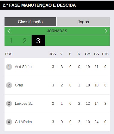 Na tabela classificativa desta etapa, o ACD Sótão ficou em 1.º lugar, com nove pontos, enquanto o GRAP ficou em 2.º lugar com seis pontos.