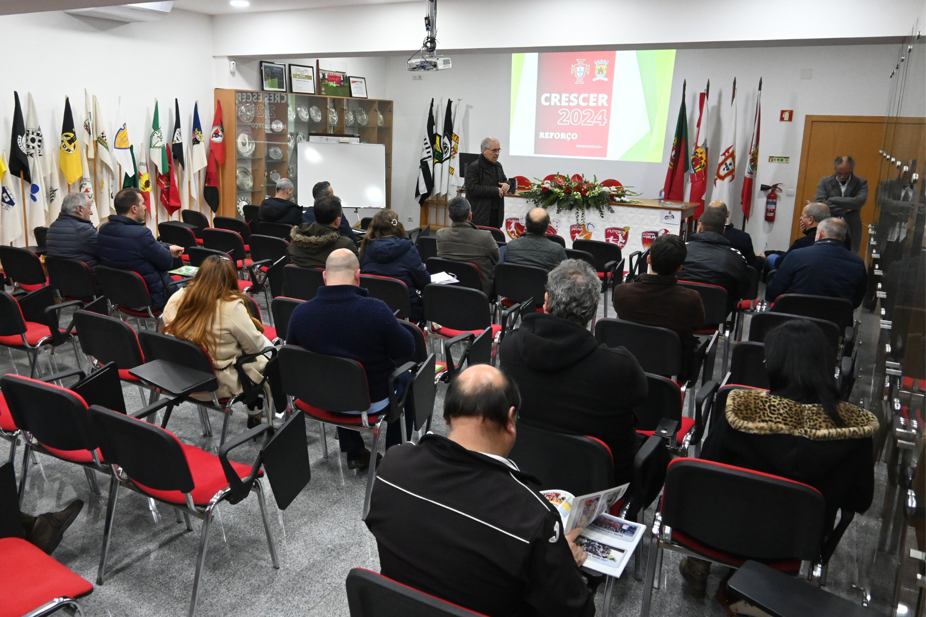 A Associação de Futebol de Leiria realizou, na passada segunda-feira, dia 29 de janeiro, uma Ação de Informação acerca do Reforço do Programa "Crescer 2024", que teve lugar no Auditório da Sede da AF Leiria, com os clubes candidatos a este Programa.